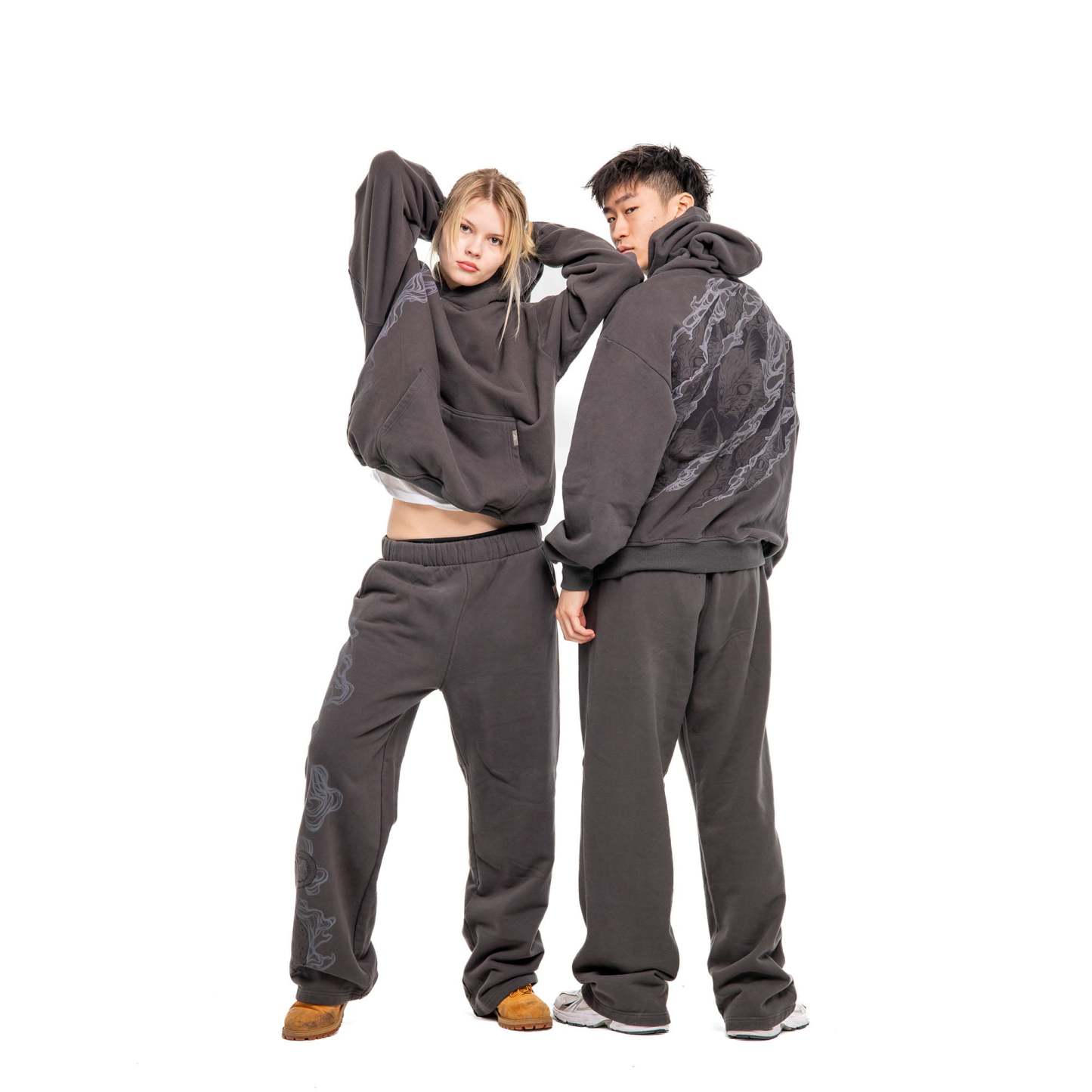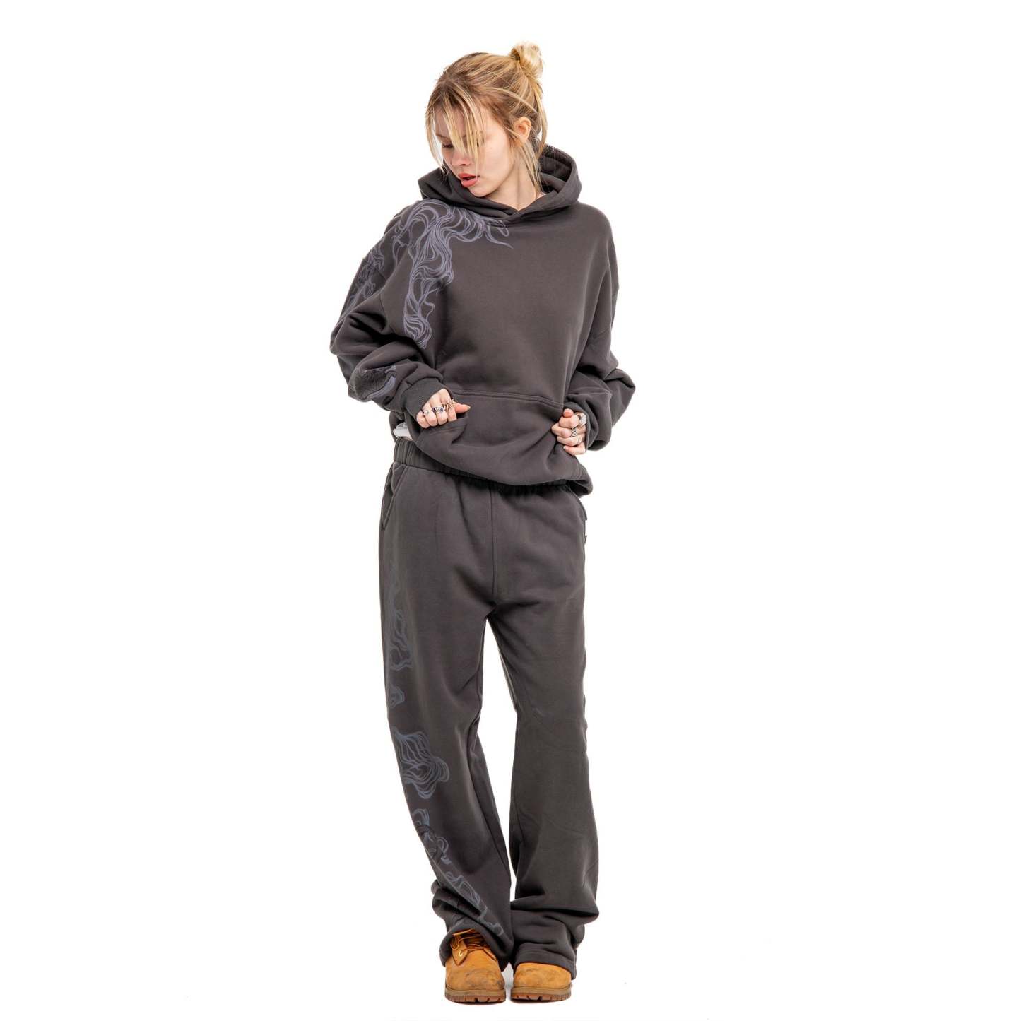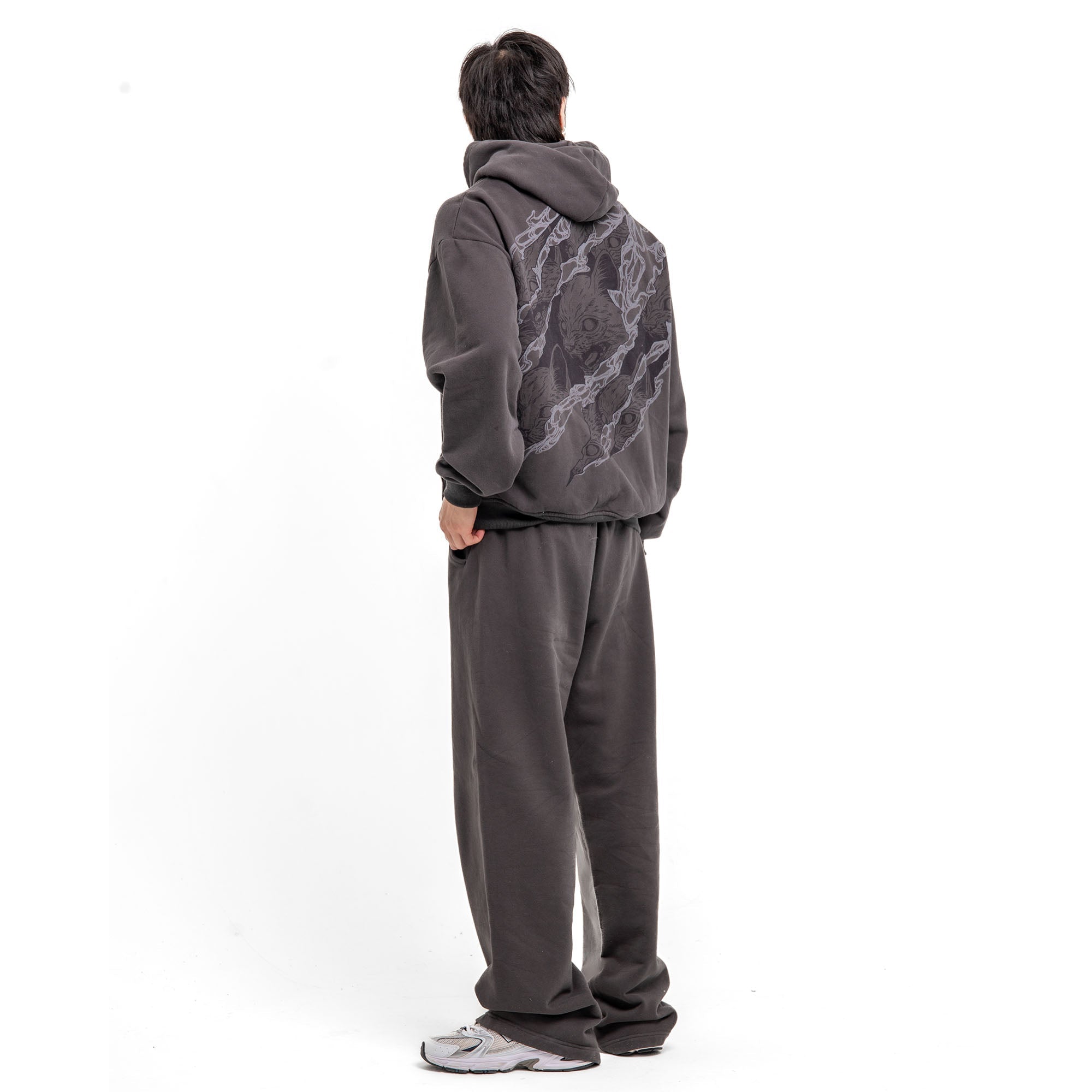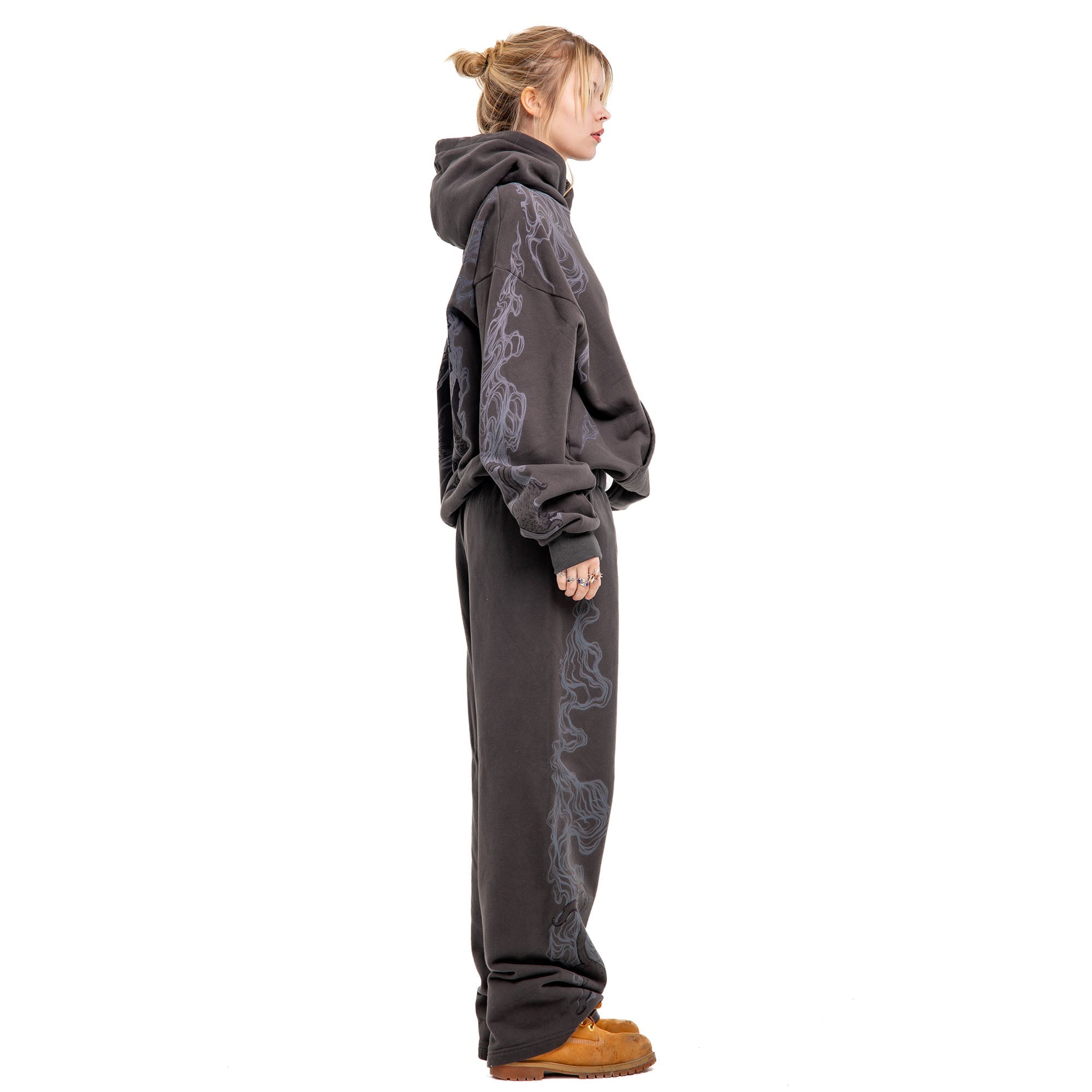 The Bakeneko Hoodie; Inspired by the mythical Bakeneko, a shape-shifting cat from Japanese folklore, this oversized hoodie brings mysticism to modern style. The Bakeneko is said to possess supernatural powers, including controlling fire and summoning spirits, often with a mischievous nature. This hoodie features a striking DTG print of a Bakeneko emerging from smoke on the back, with a smaller Bakeneko cat on the sleeve, capturing the essence of this enigmatic creature.
