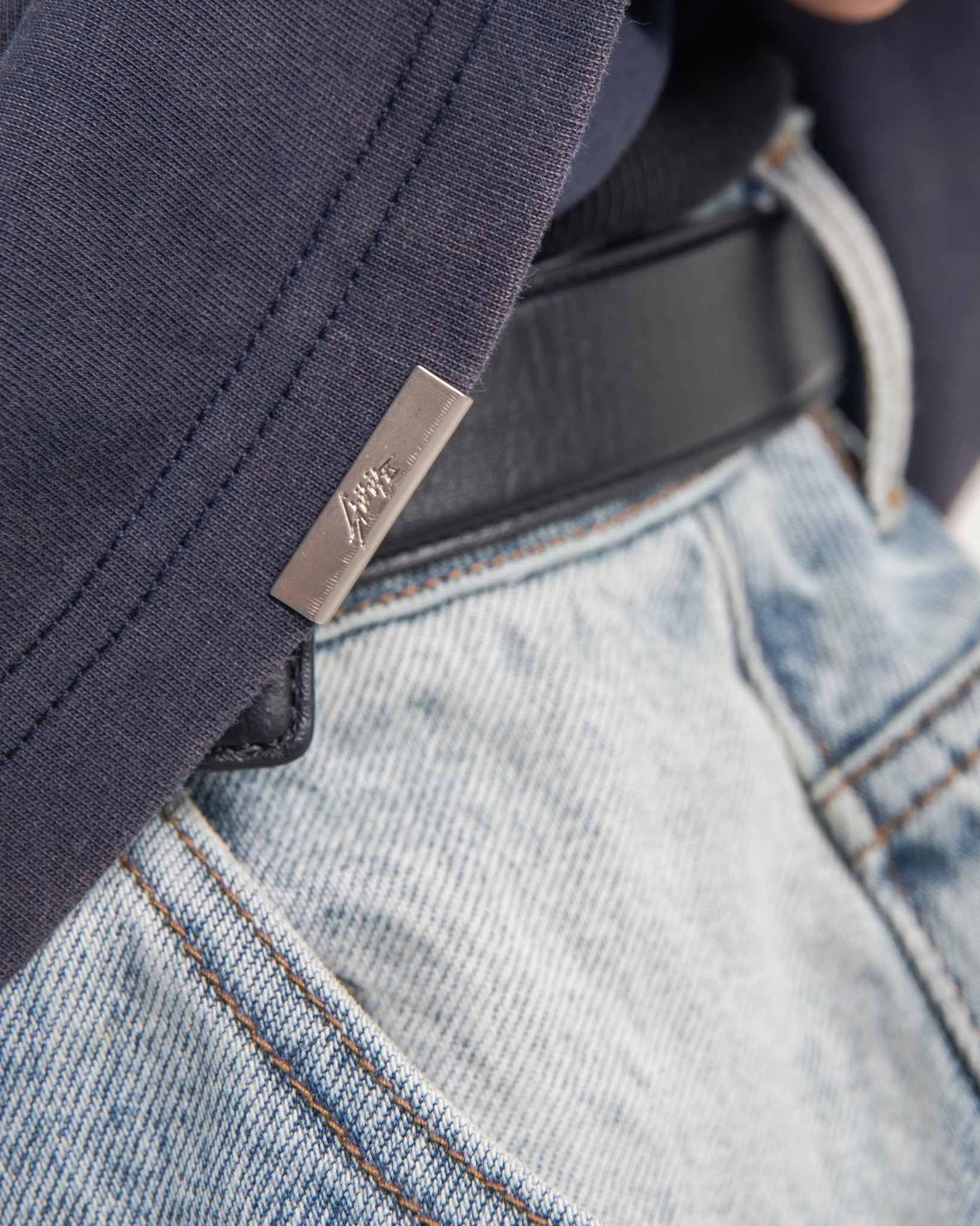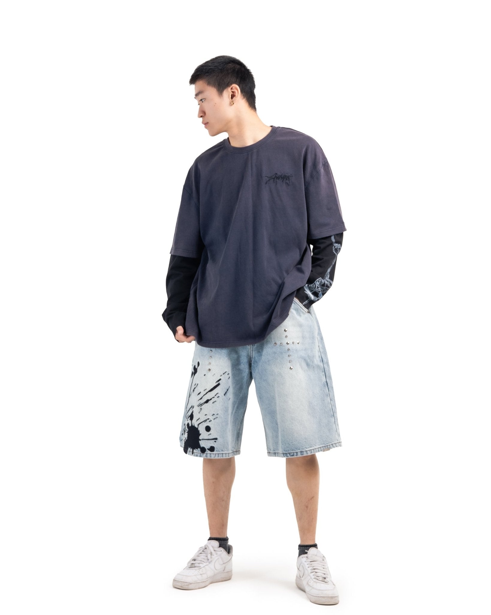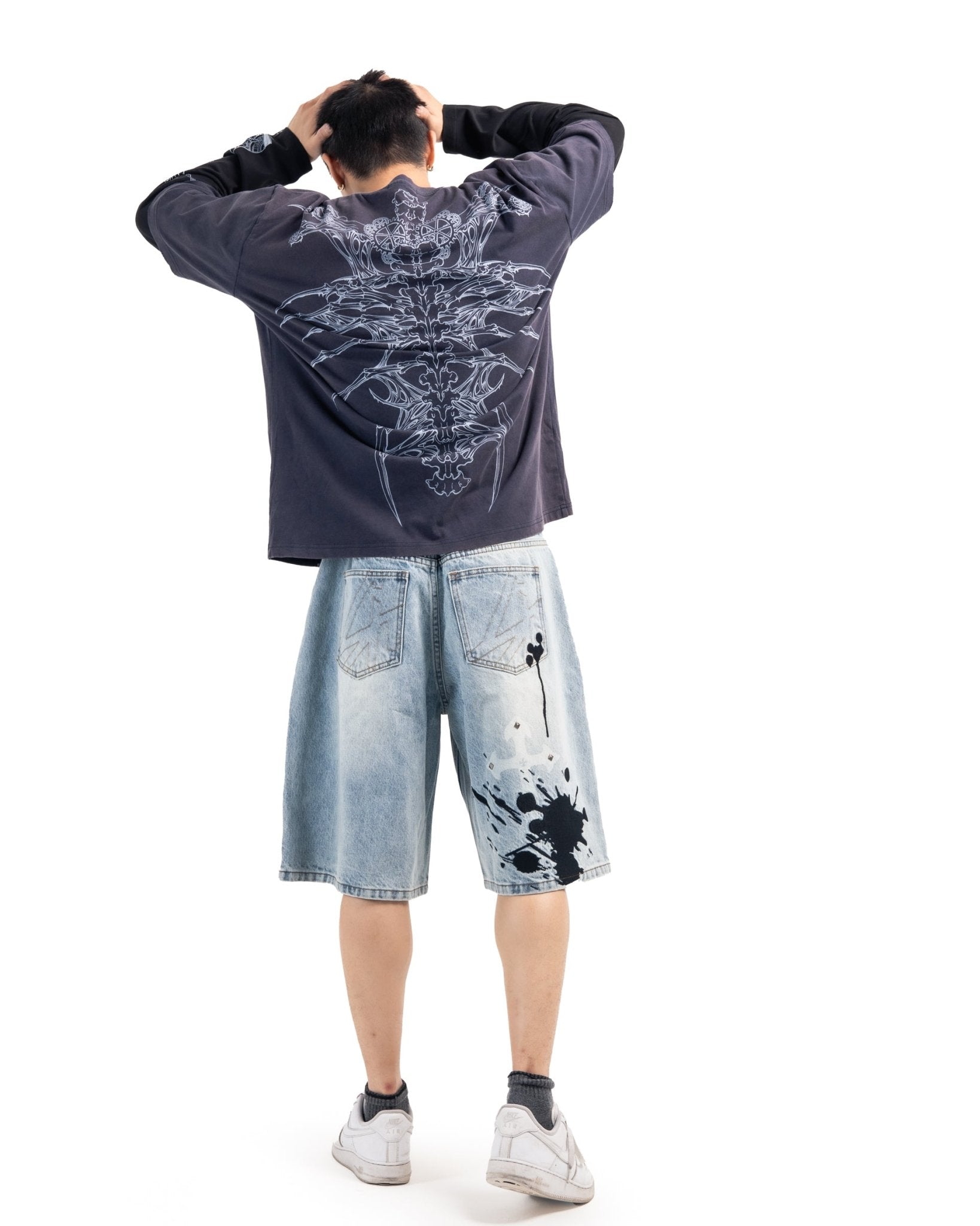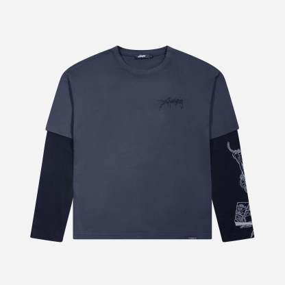 Blue Moon long-sleeve shirt with an oversized fit, made from medium-weight cotton. Features a ribbed crewneck collar.
