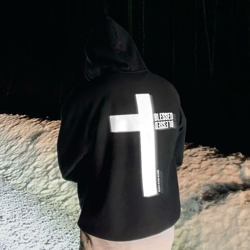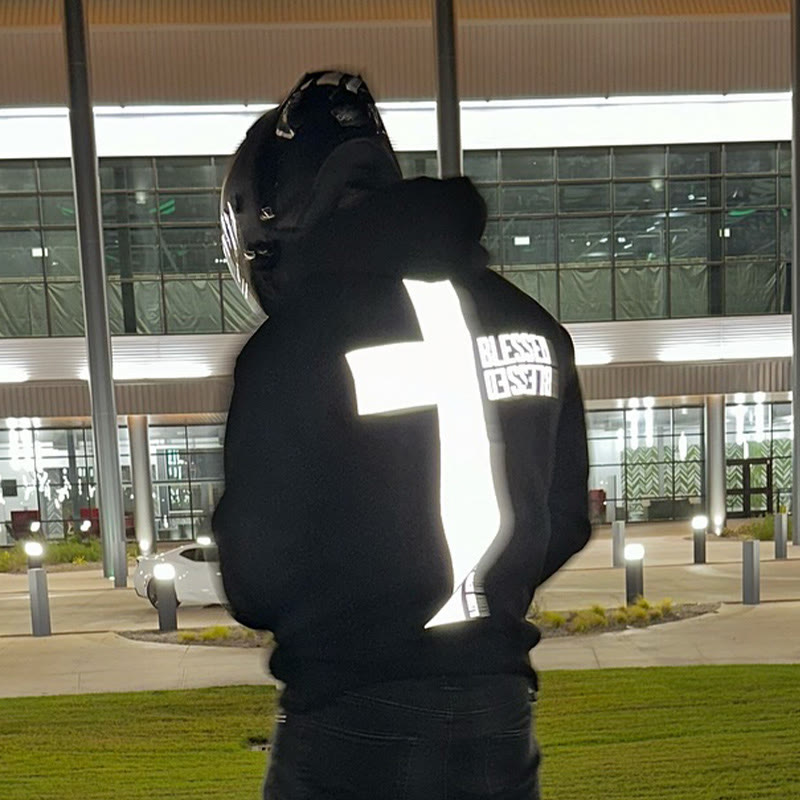 3M Reflective Blessed Cross Print Hoodie