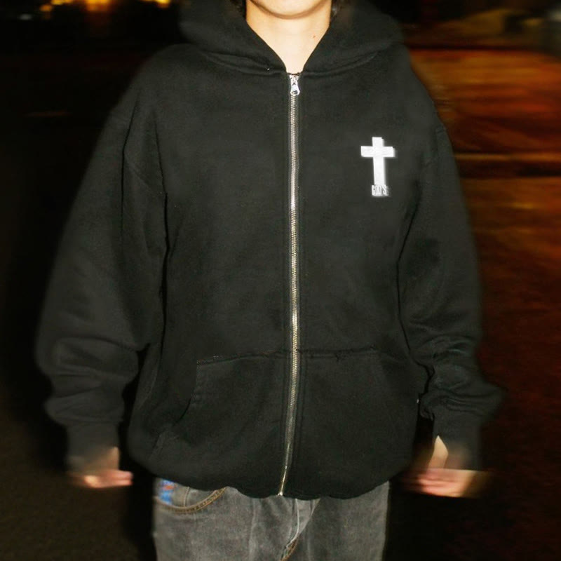 3M Reflective Blessed Cross Print Zip Up Hoodie