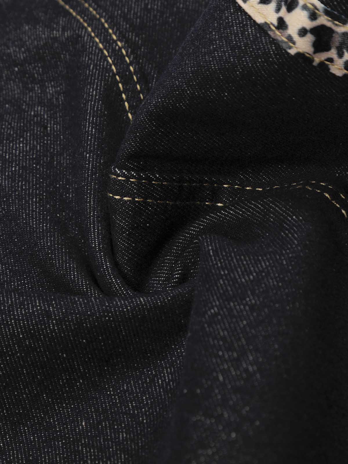 • Design Elements: Contrasting animal print trim, high-rise waist