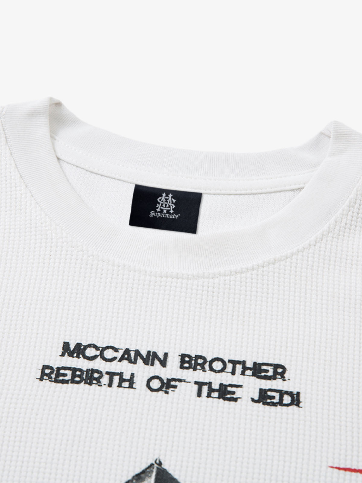 • Design Elements: Central cross graphic print, red starburst accents, inspirational text
